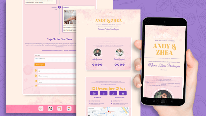Pilih dari koleksi template menakjubkan yang dapat diedit sesuka hati Dengan desain undangan digital ini, tamu undangan tidak akan ragu untuk menghadiri acara Kamu!